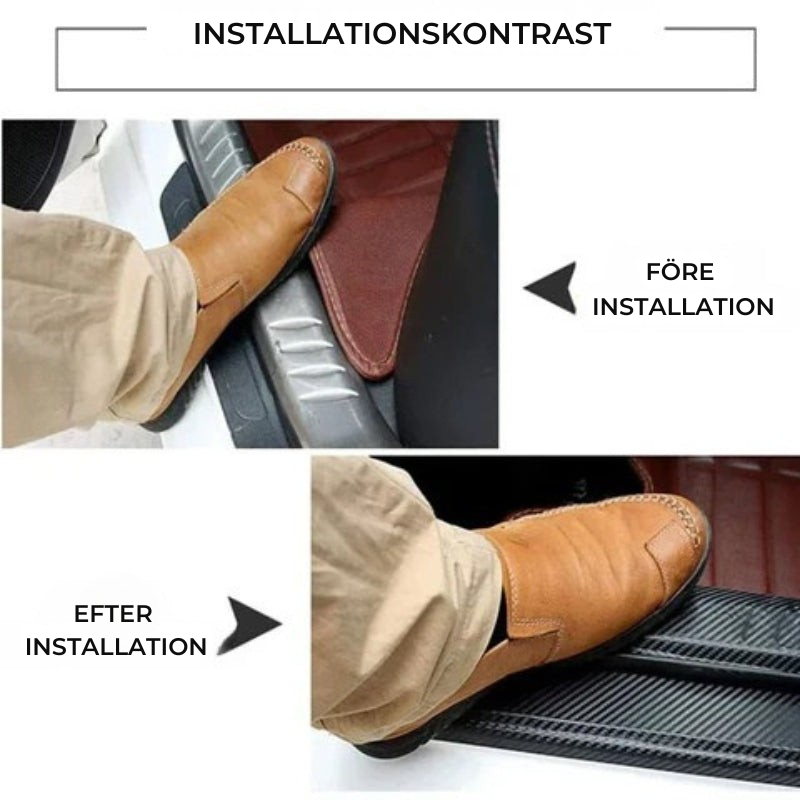 Varje gång du kliver in i bilen riskerar trösklarna att repas och slitas. Det ser inte bara slarvigt ut, utan sänker också bilens helhetsintryck. Med Karbonskydd™ undviker du skador och ger samtidigt bilen en sportig uppgradering.